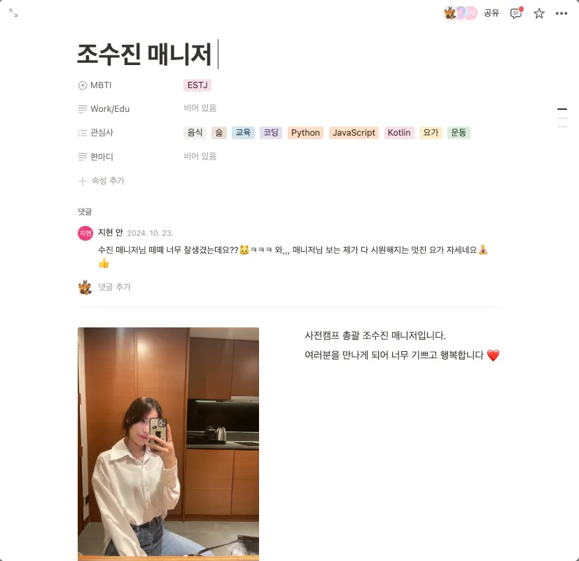 간단하게 인사를 나누신 뒤 우리팀만의 팀 노션을 생성할거에요.