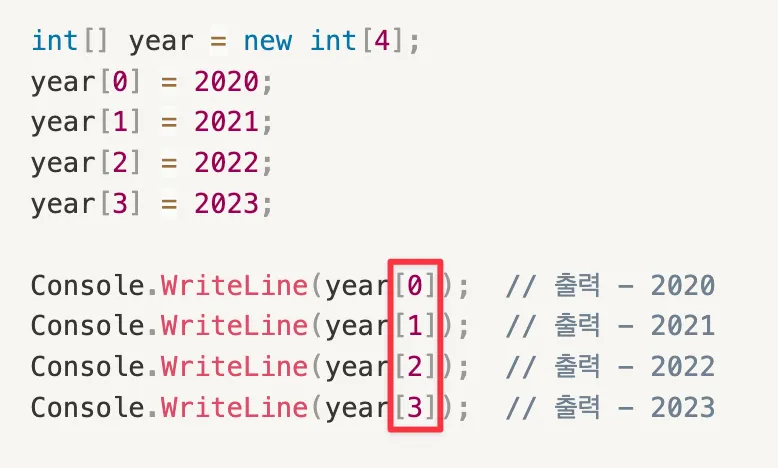 year[i] 은 곧 year[3] 으로 사용됩니다. - // 2023 출력