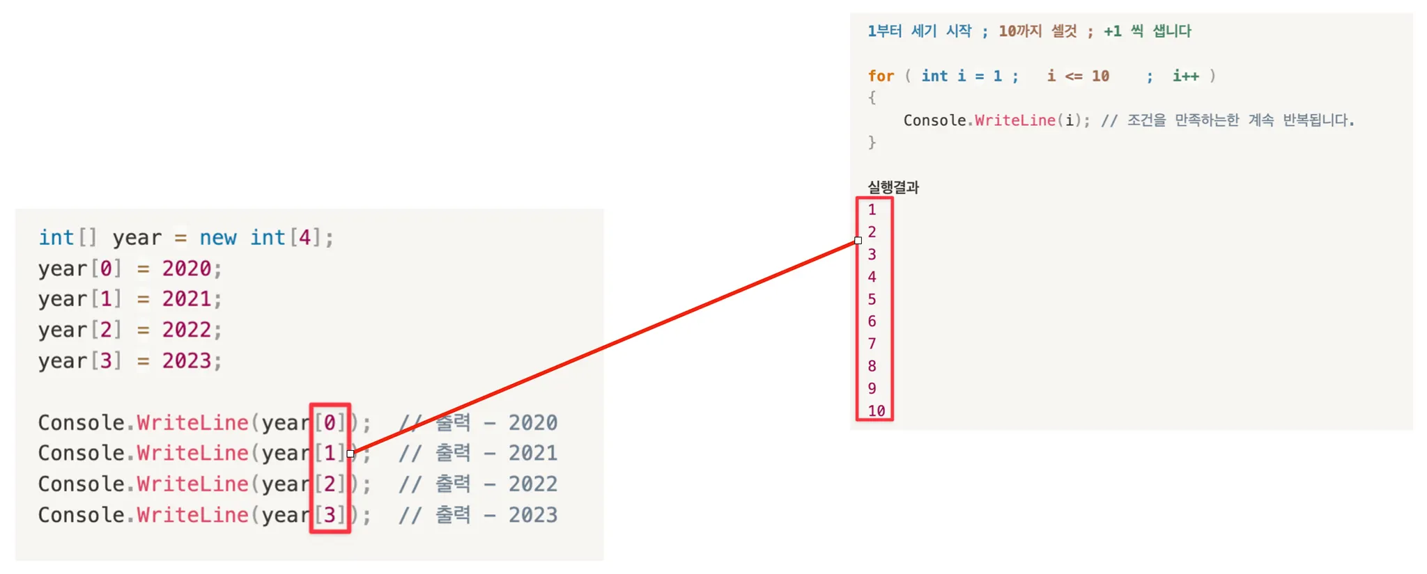 year[i] 은 곧 year[2] 으로 사용됩니다. - // 2022 출력