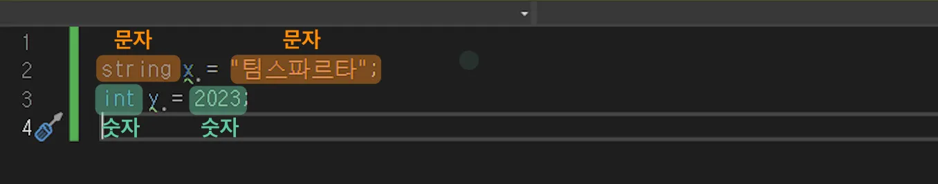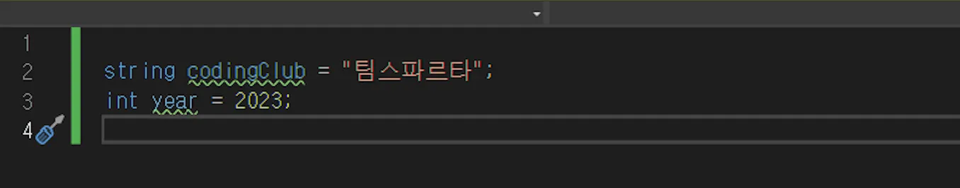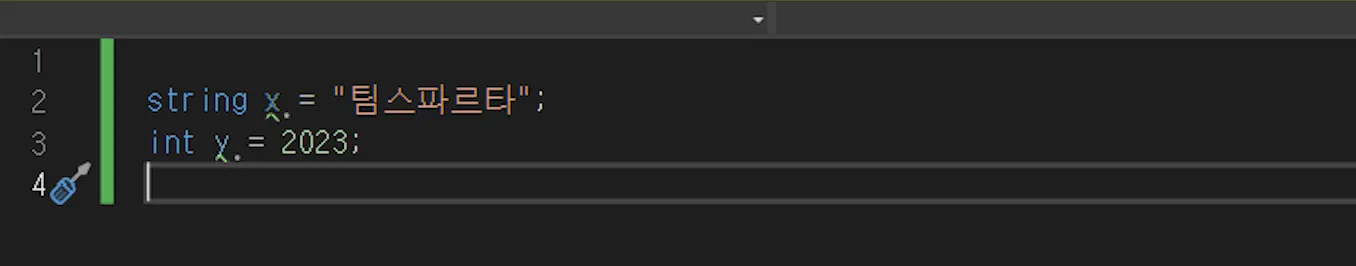데이터형식과 이름을 정하고 세미콜론으로 마무리하면 변수가 만들어지게 됩니다.