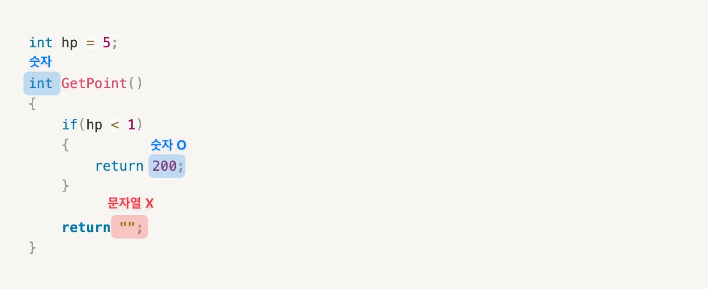 반환타입과 return 결과의 타입을 맞췄는데도 에러가 발생하는 것을 볼 수 있습니다.