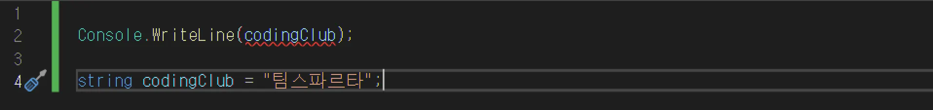 변수를 만들기 전에 사용하면 에러가 발생합니다.