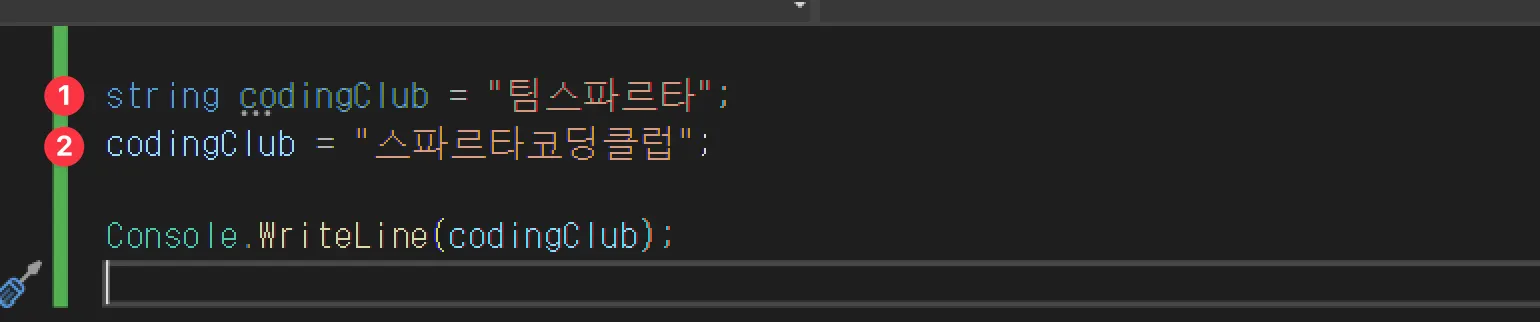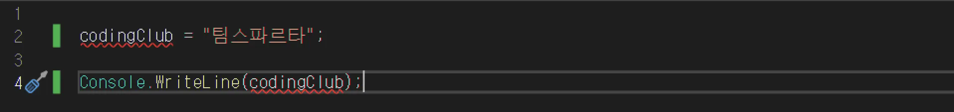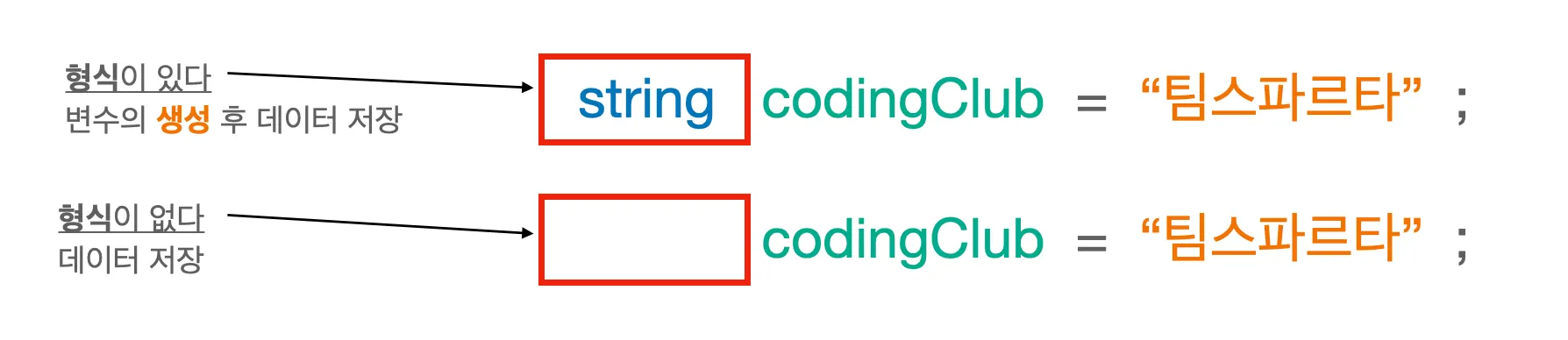 변수를 생성하는 것과 값을 저장하는 부분을 구분하려면 변수 앞에 데이터형식을 붙였는지로 확인하면 됩니다.