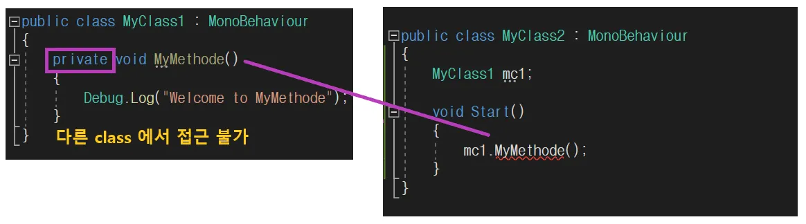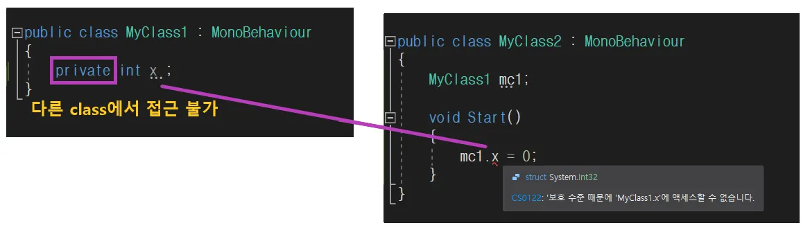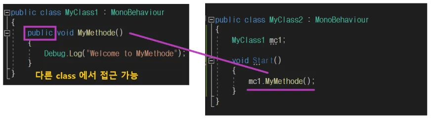내가 작업한 클래스의 변수 및 함수를 다른 클래스에서 접근하는 것을 설정할 수 있습니다.