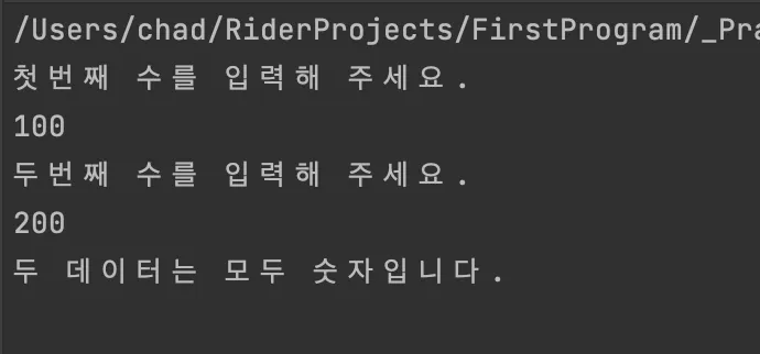 첫번째 수와 두번째 수 모두 숫자 라면 - “두 데이터는 모두 숫자입니다.”