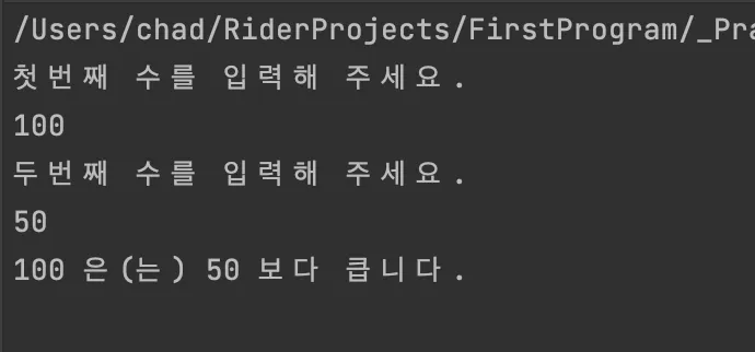 첫번째 수가 더 크다 - “xx 은(는) xx 보다 큽니다.”