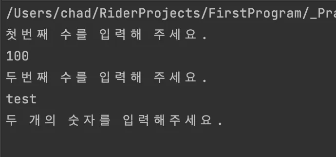 둘 중 하나라도 숫자가 아니라면 - “두 개의 숫자를 입력해주세요.”