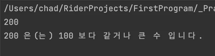 수가 100 이상이라면 크다면 “xx 은(는) 100 보다 같거나 큰 수 입니다.”