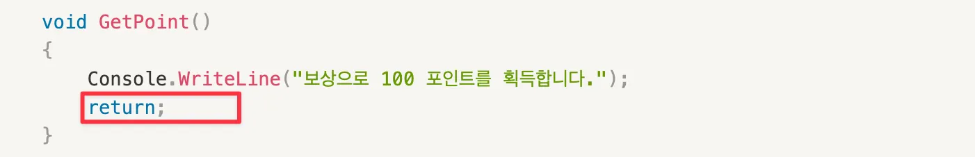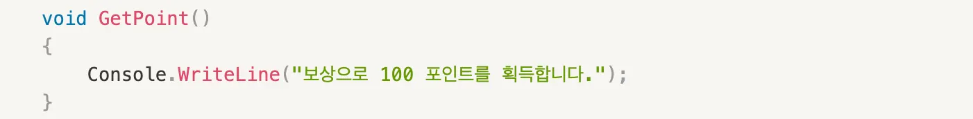 Console.WriteLine("보상으로 100 포인트를 획득합니다.");