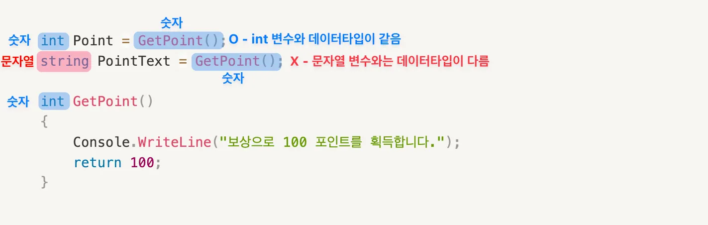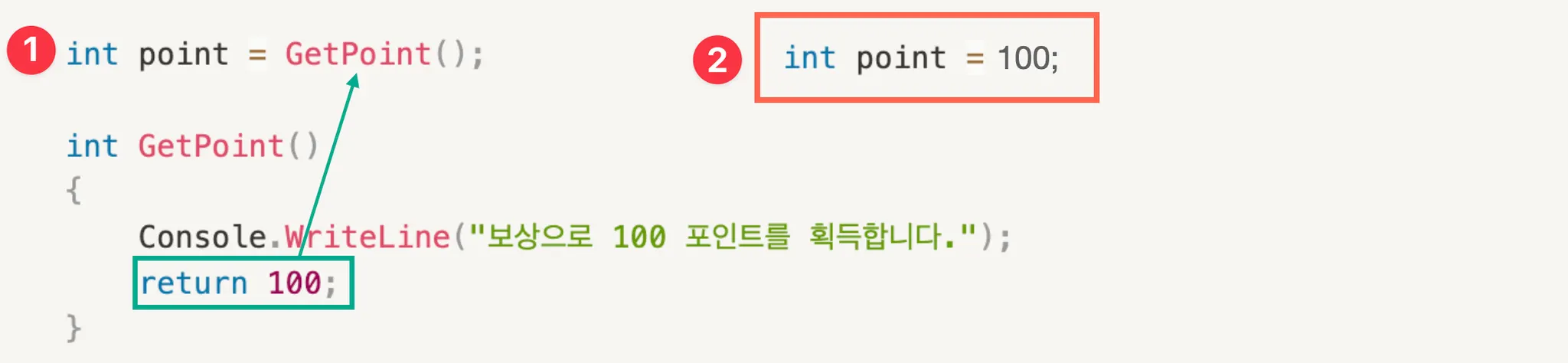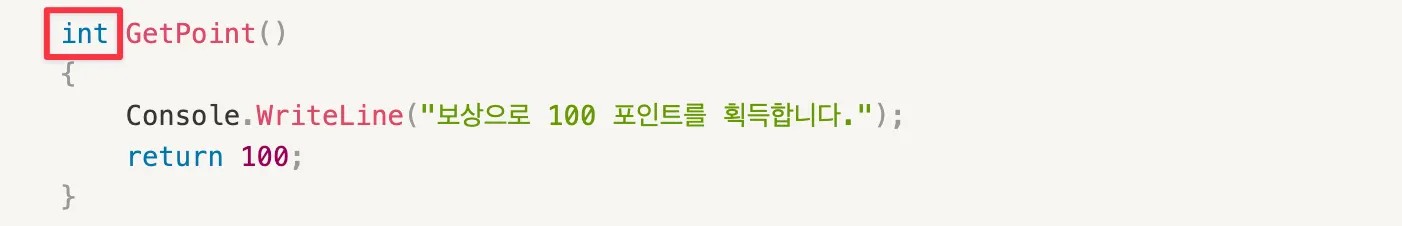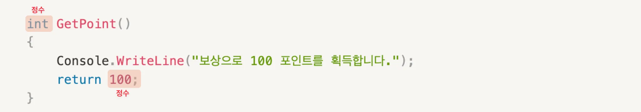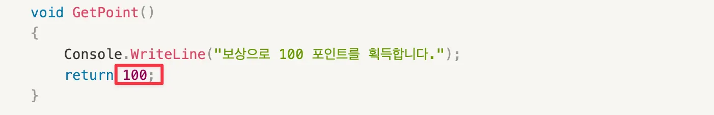 GetPoint() 를 실행하면 return 뒤에 있는 숫자 100 이 저장됩니다.