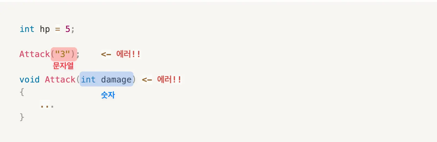 매개변수와 입력하는 값의 타입이 같아야 합니다.