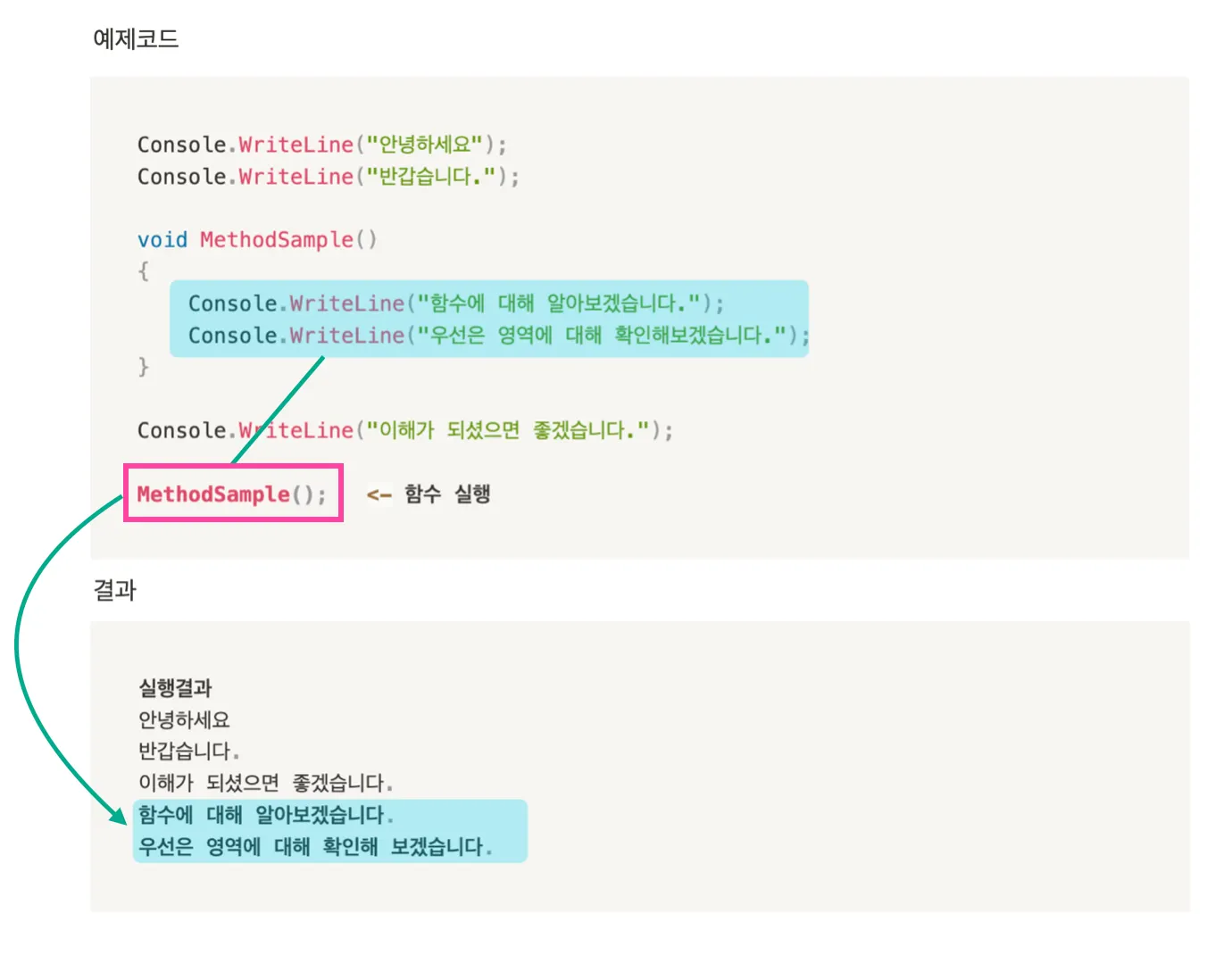 Console.WriteLine("함수에 대해 알아보겠습니다.");