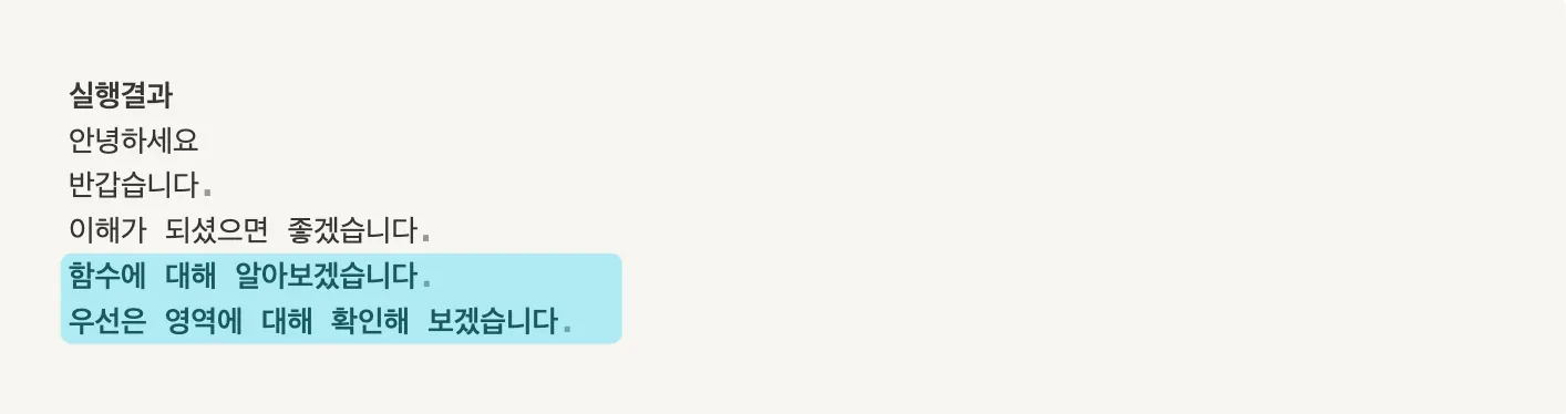 함수에 대해 알아보겠다고 출력하는 기능을 만들었습니다.