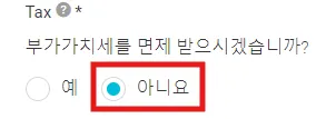 (부가가치세를 면제 받으시겠습니까?에 아니오를 체크해주세요.