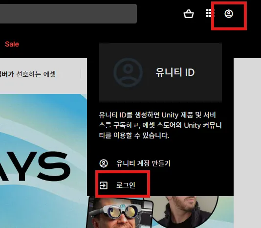 에셋 스토어에 로그인합니다.